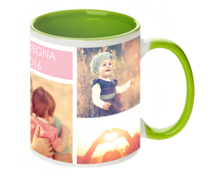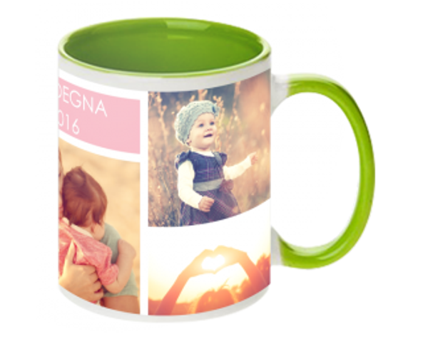 Tazza in ceramica bianca lucida con interno e manico colorati.