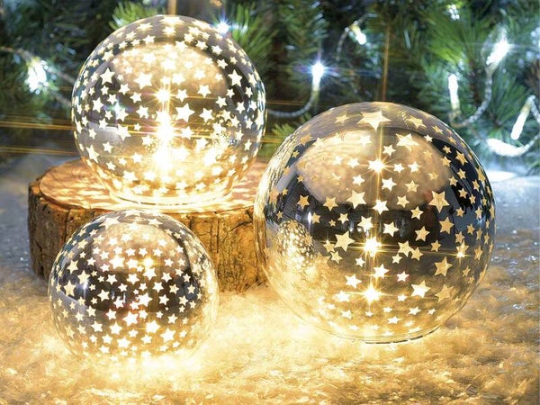 Set di 3 lampade a sfera argento con luce led bianco caldo e timer da 6h
