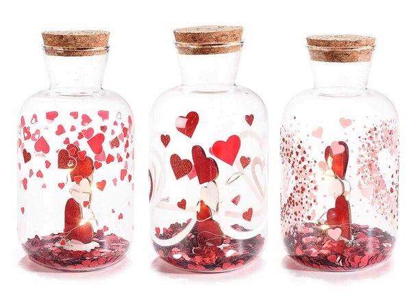 Barattolo in vetro decorato con paillettes a cuore e luci LED.