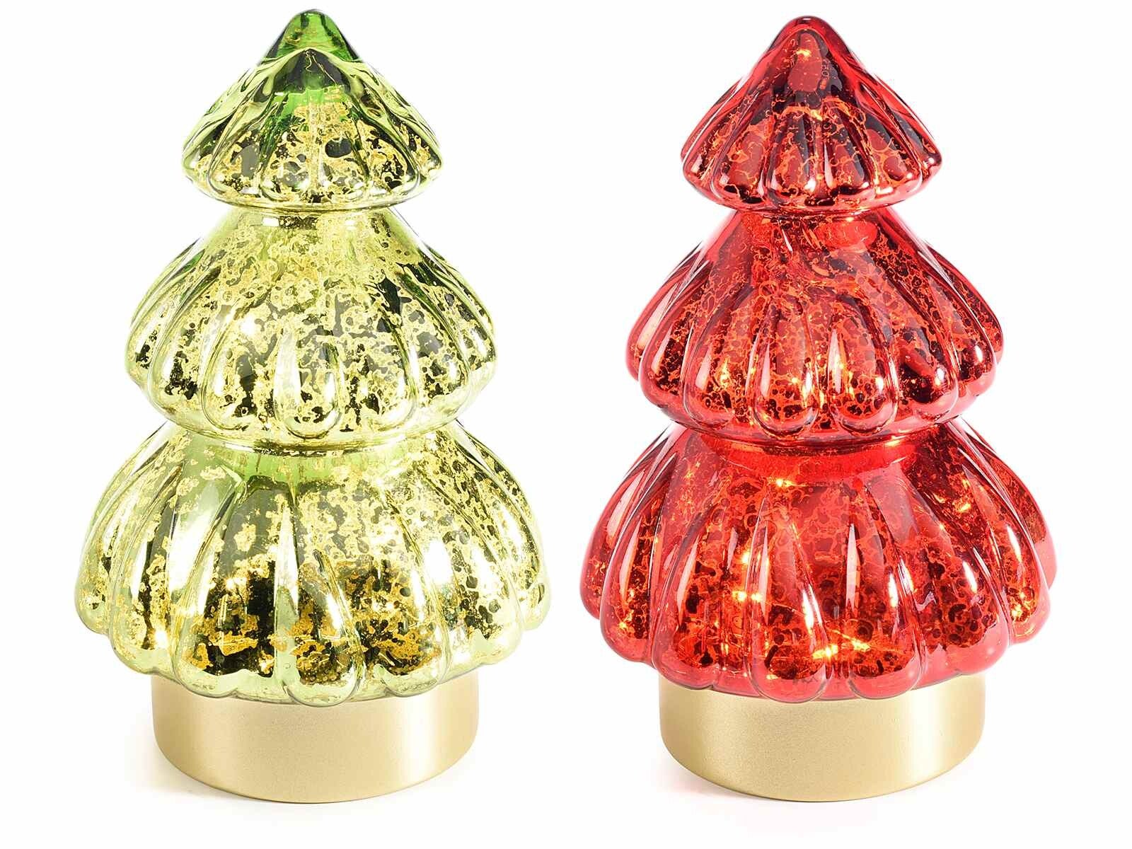 Lampada, in vetro lavorato, ad albero di Natale con luci led.