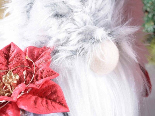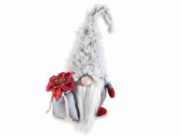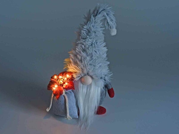 Babbo Natale in stoffa con sacco, stella di Natale e luci LED.