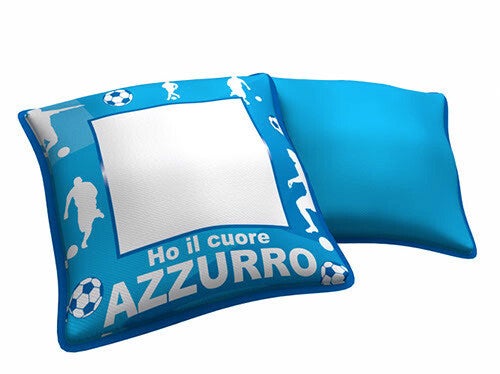 Cuscino, in cotone e poliestere, con retro colorato e fronte stampato con inserto personalizzabile.