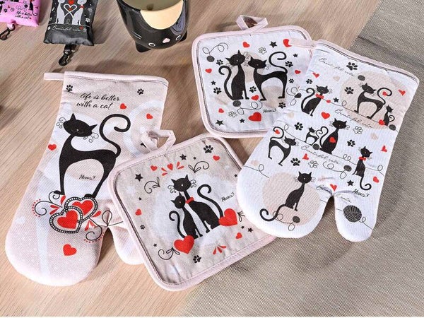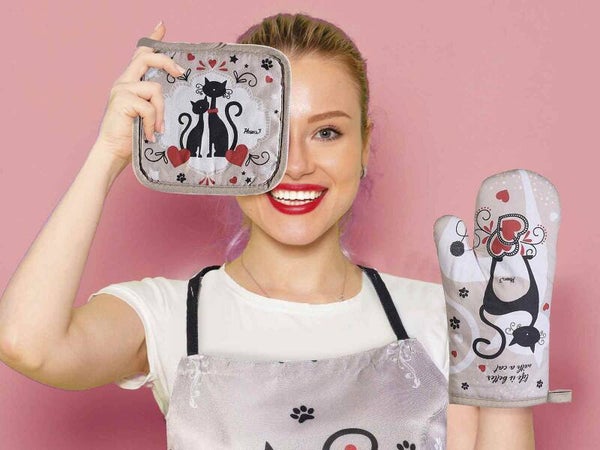 Set con 2 guanti e 2 presine da cucina.