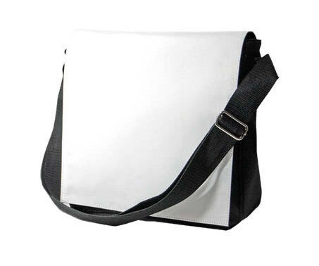 Borsa tracolla nera con patta personalizzabile, in poliestere, con zip e scomparti.