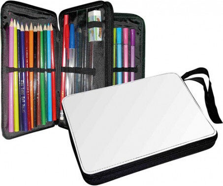 Portapenne in tela e poliestere con pastelli e pennarelli.