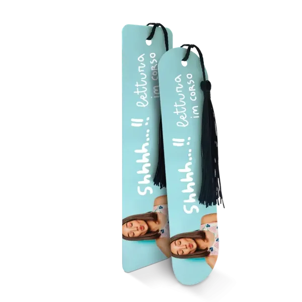 Segnalibro in alluminio con frange, stampabile da entrambi i lati.