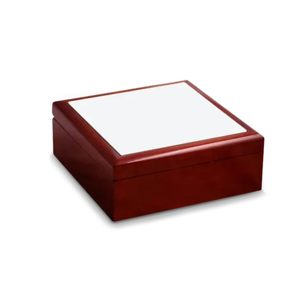 Scatola in legno mogano con mattonella in ceramica.