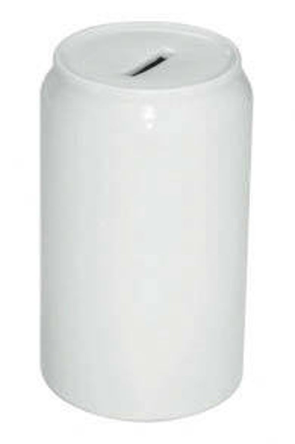Salvadanaio in ceramica a forma di lattina.