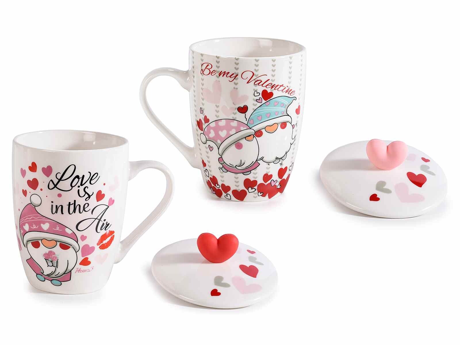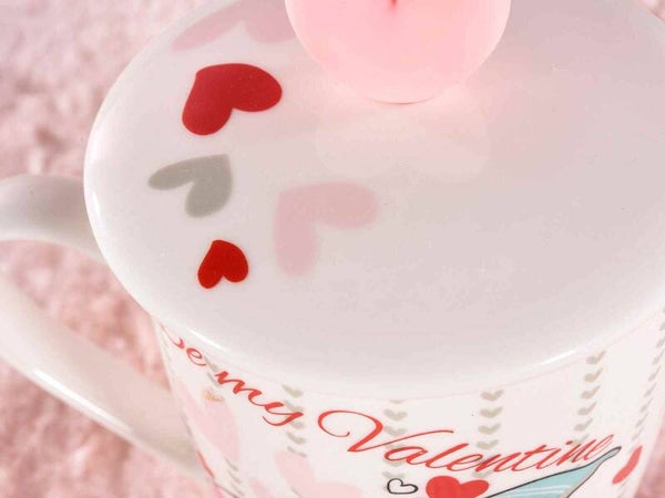 Tazza in porcellana da 350ml con coperchio a cuore.