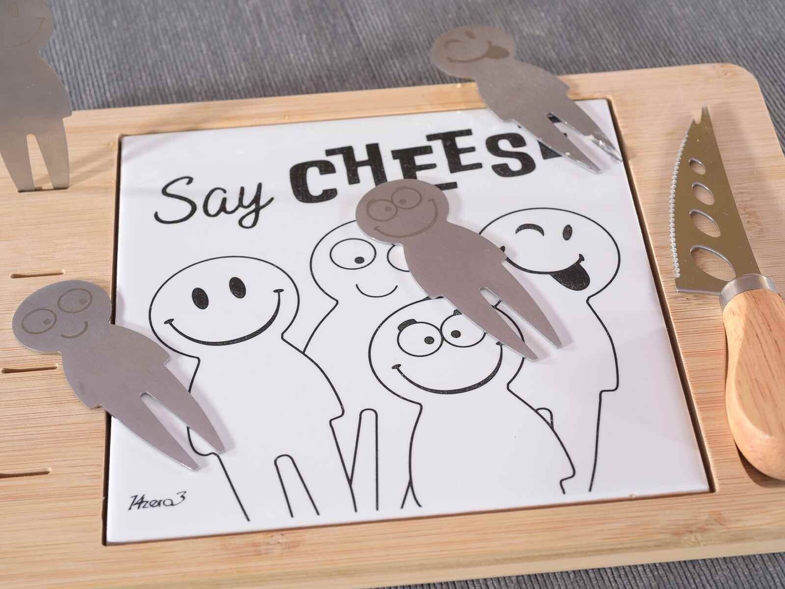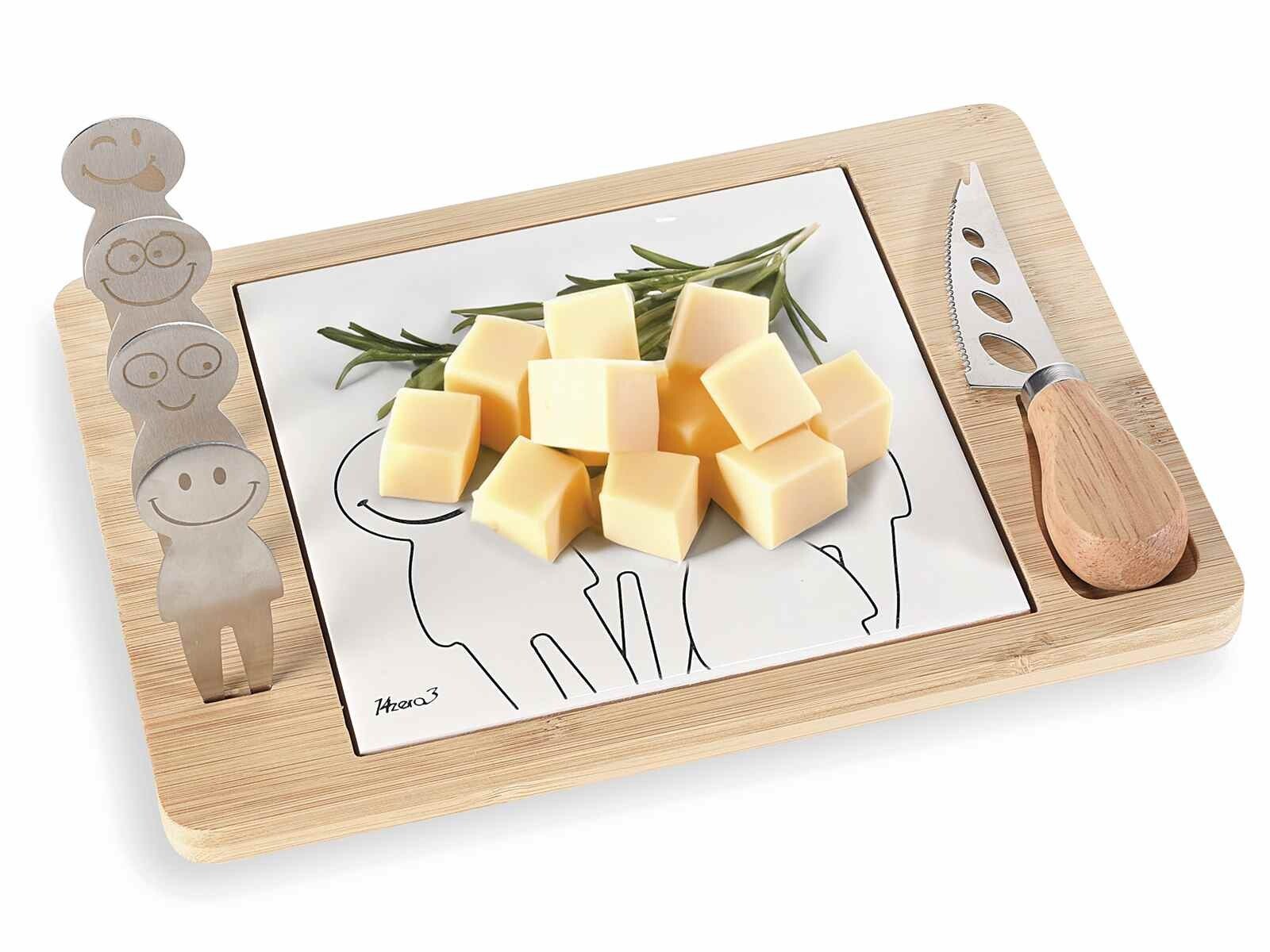 Set tagliere in bambù e ceramica con coltello e 4 forchettine.