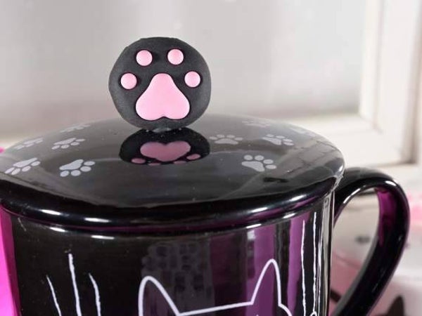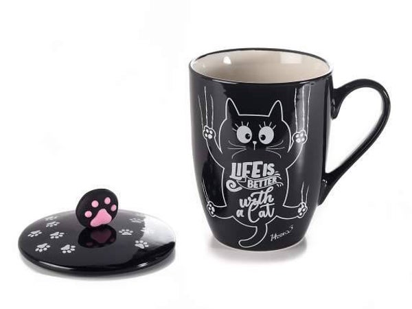 Tazze gatto in porcellana, con coperchio, da 300 ml.