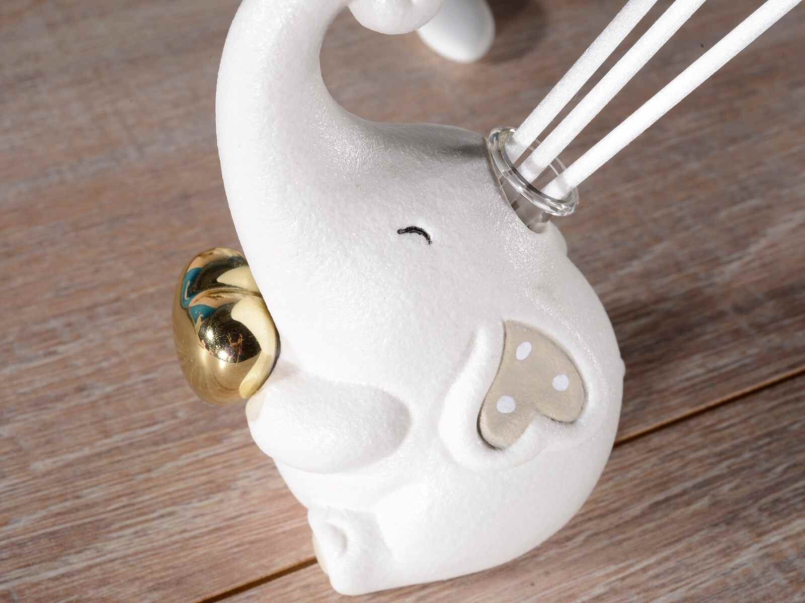 Elefantini, in porcellana perlata, con stick per diffusione profumo/fragranze.