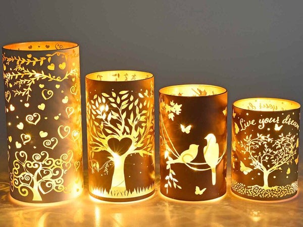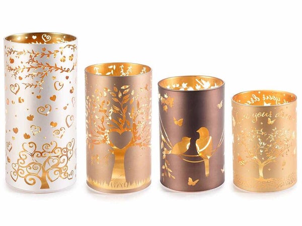 Set di 4 lampade in vetro con luci LED.
