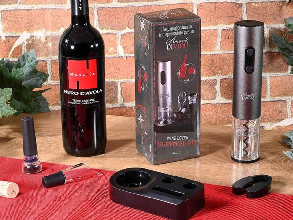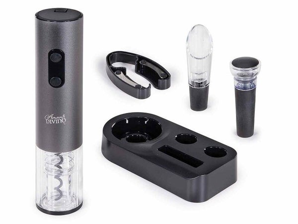 Set da sommelier con apribottiglie a batteria e accessori per il vino.