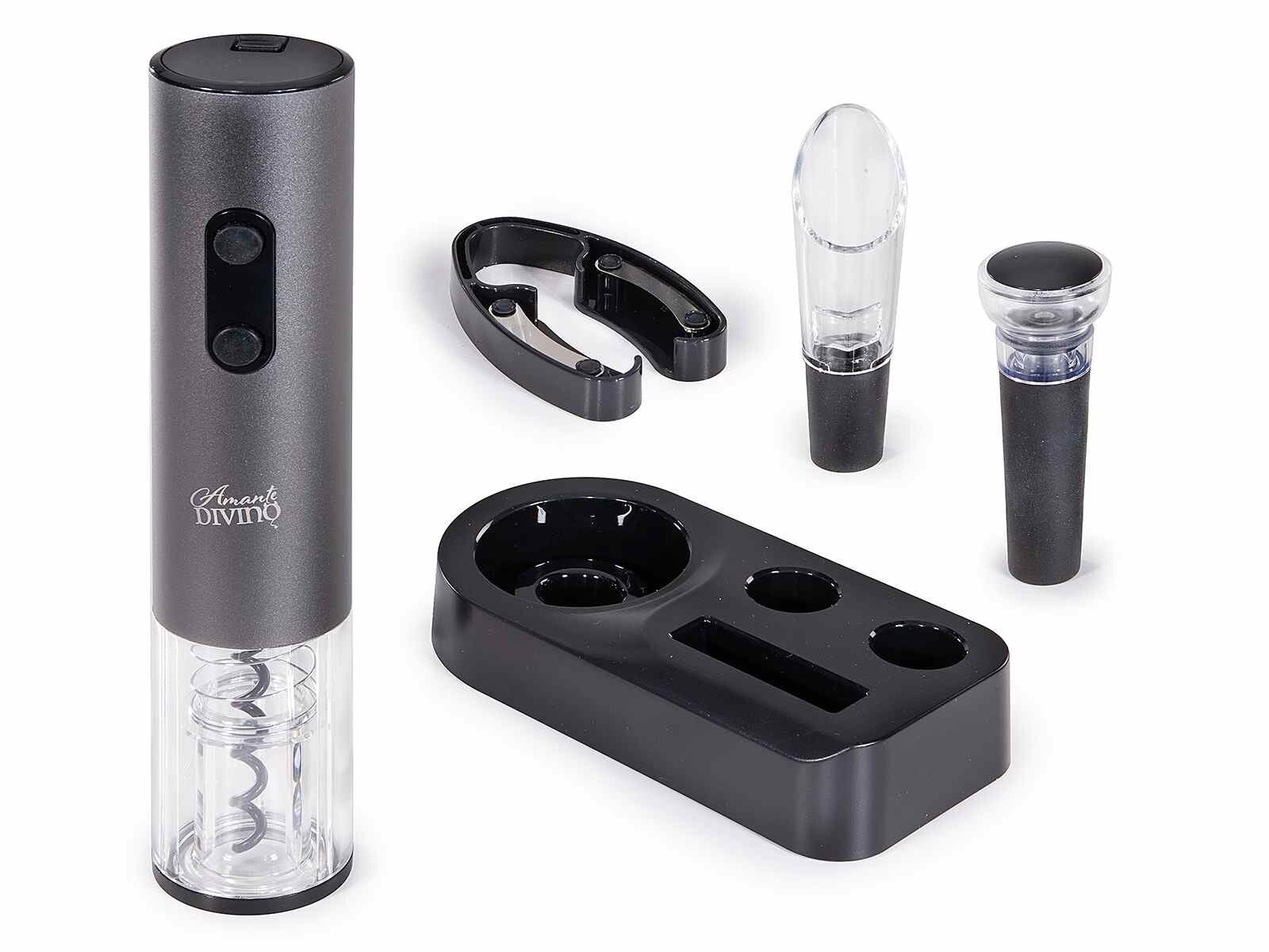 Apribottiglie, Taglia capsule, Tappo versatore e Tappo sottovuoto - Funziona con 4 pile stilo non incluse