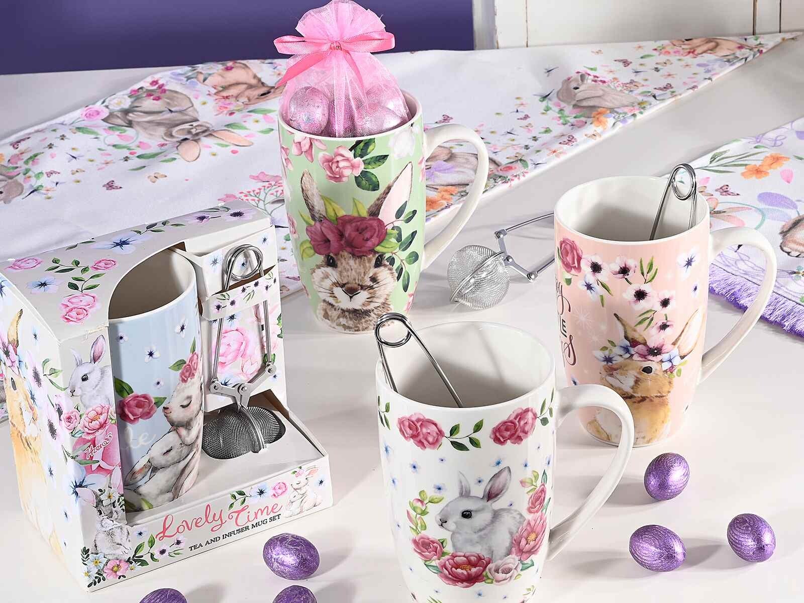 Set da tè con tazza in porcellana e filtro in acciaio.