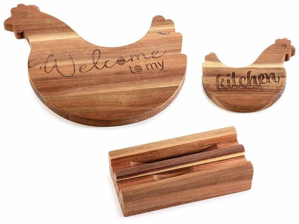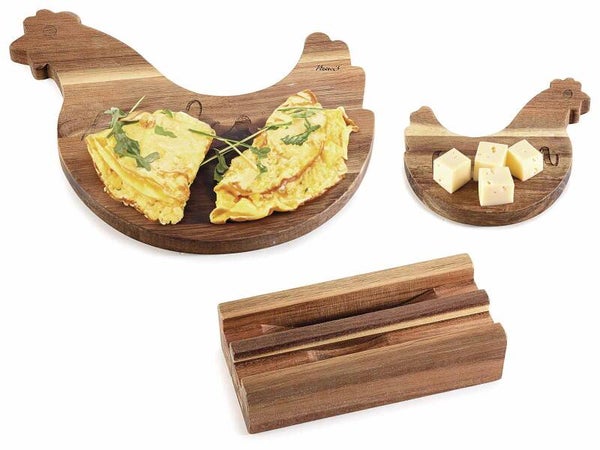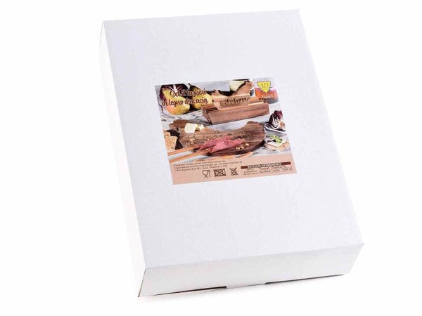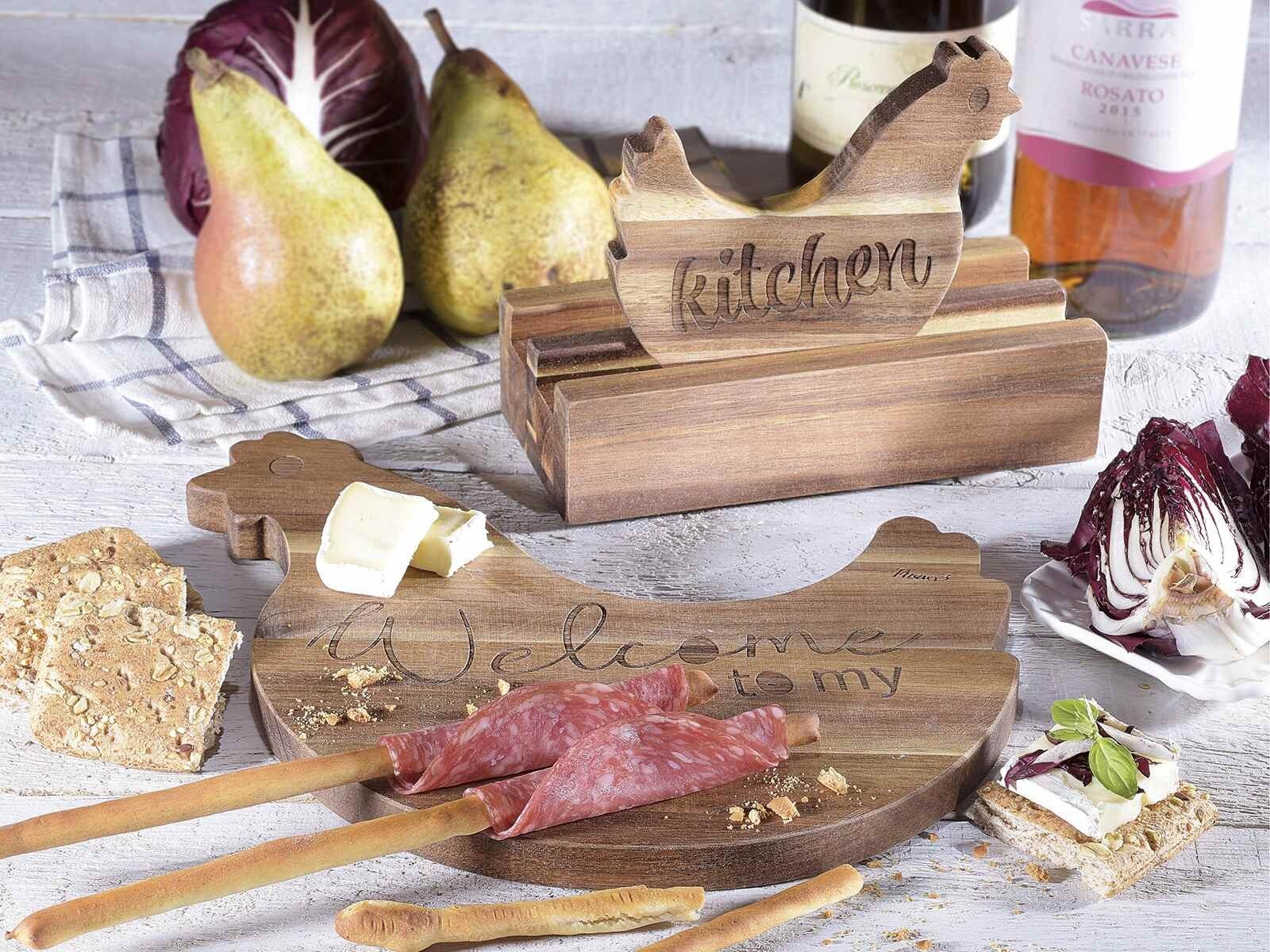 Misure: cm 25 x 8 x 24 HTagliere grande: 25 x 22 H - Tagliere piccolo: 13 x 11 H - Spessore: 1,5 cm