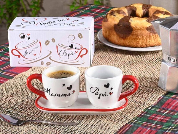 Set di 2 tazzine da caffè con piattino, in ceramica.